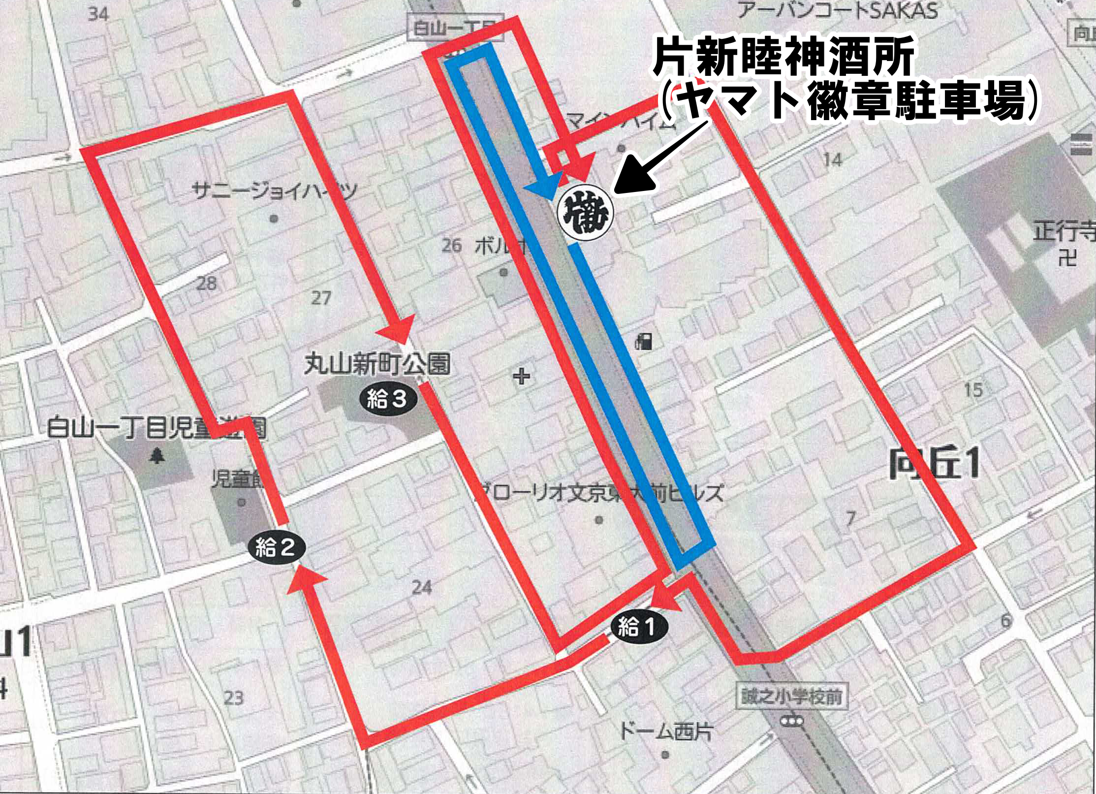 片新睦かたしんむつみ神酒所みきしょ(ヤマト徽章きしょう駐車場)。下記の地図参照。
